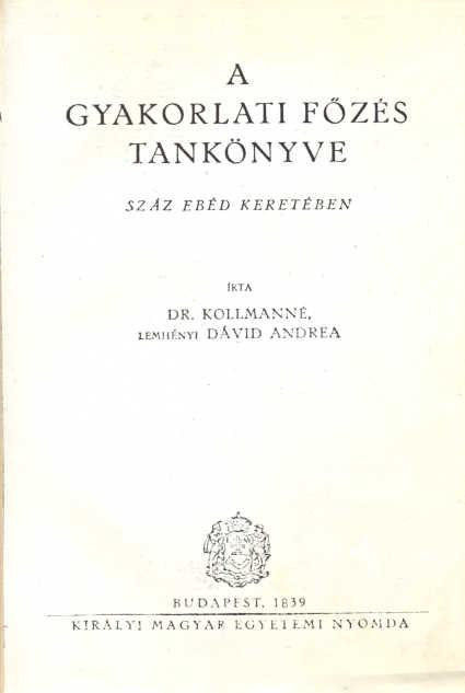 Kollmanné Lemhényi Dávid Andrea: A gyakorlati főzés tankönyve, száz ebéd keretében. Fénymásolat.