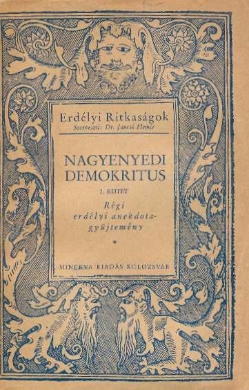 Nagyenyedi síró Heraklitus és hol mosolygó s hol kacagó Demokritus. Régi erdélyi anekdotagyűjtemény. Hermányi Dienes József kéziratos gyűjteménye 1762-ből. I. kötet
