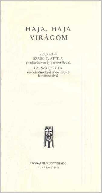 Haja, haja virágom. Virágénekek Szabó T. Attila gondozásában. Gy. Szabó Béla fametszeteivel.