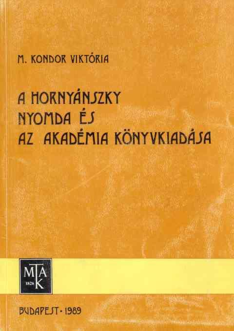 M. Kondor Viktória: A Hornyánszky nyomda és az Akadémia könyvkiadása