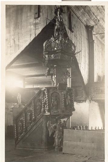képeslap - KÉSMÁRK -Kezmarok /Kazatelna v evanj. 0drevenom kostole z. roku 1717/