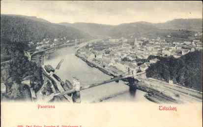 képeslap: Tetschen - Panorama / Szudéta vidék -Sudetenland / Děčín, Csehország