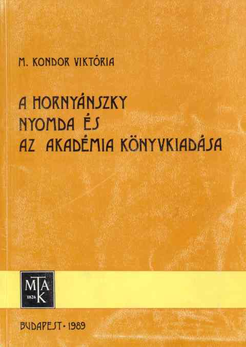 M. Kondor Viktória: A Hornyánszky nyomda és az Akadémia könyvkiadása