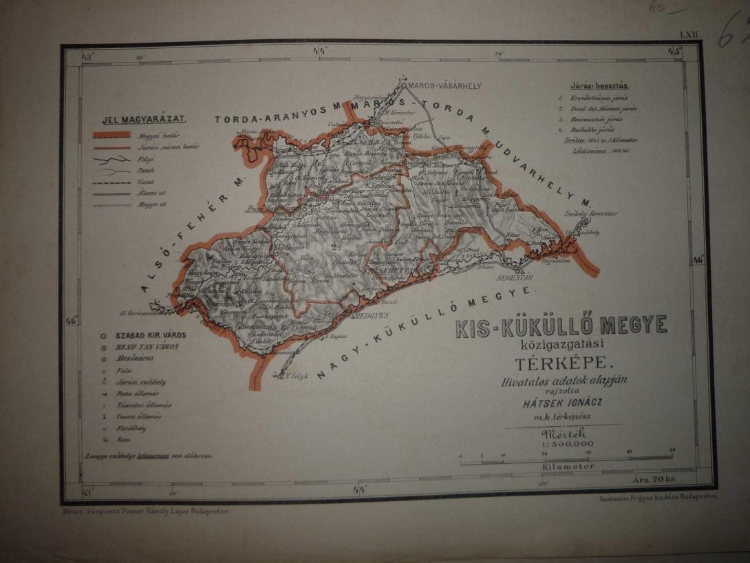 Megjelent: A magyar szent korona országainak megyei térképei c. atlaszában, 1:500.000, színes, kőnyomat ; 21x30 cm