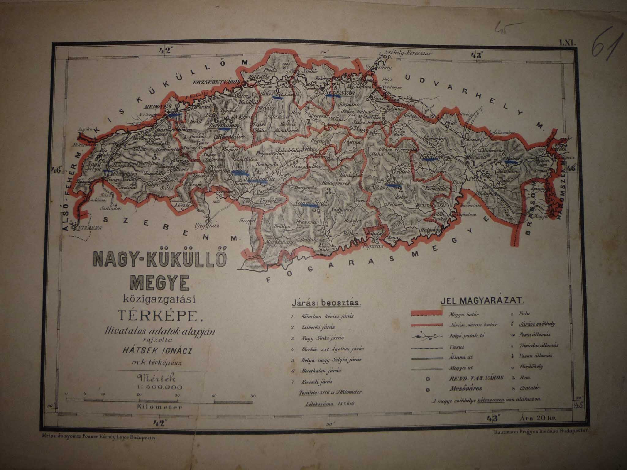 térkép: Nagy-Küküllő megye közigazgatási térképe / hivatalos adatok alapján 1 térkl. kőnyomat, színes ; 21x30 cm