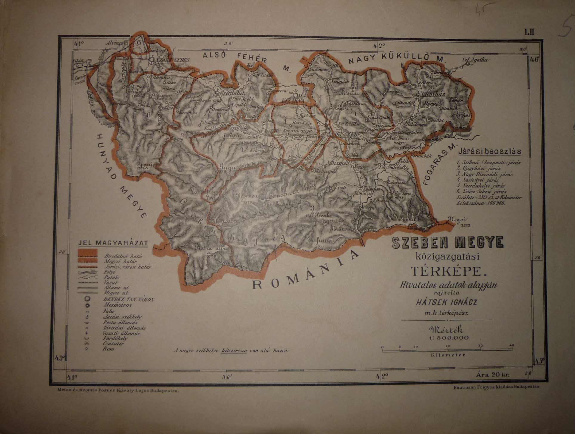 térkép: Szeben megye közigazgatási térképe / hivatalos adatok alapján 1 térkl. kőnyomat, színes ; 21x30 cm