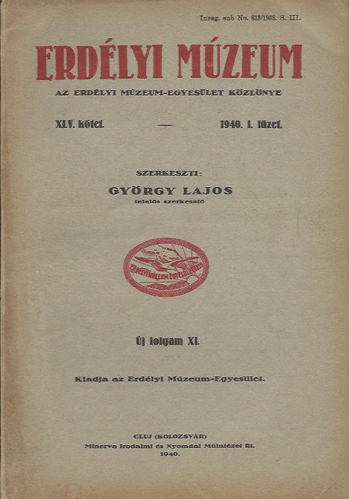 Erdélyi Múzeum XLV évfolyam. 1940 1-4 füzet (teljes) Az Erdélyi Múzeum Egyesület közlönye
