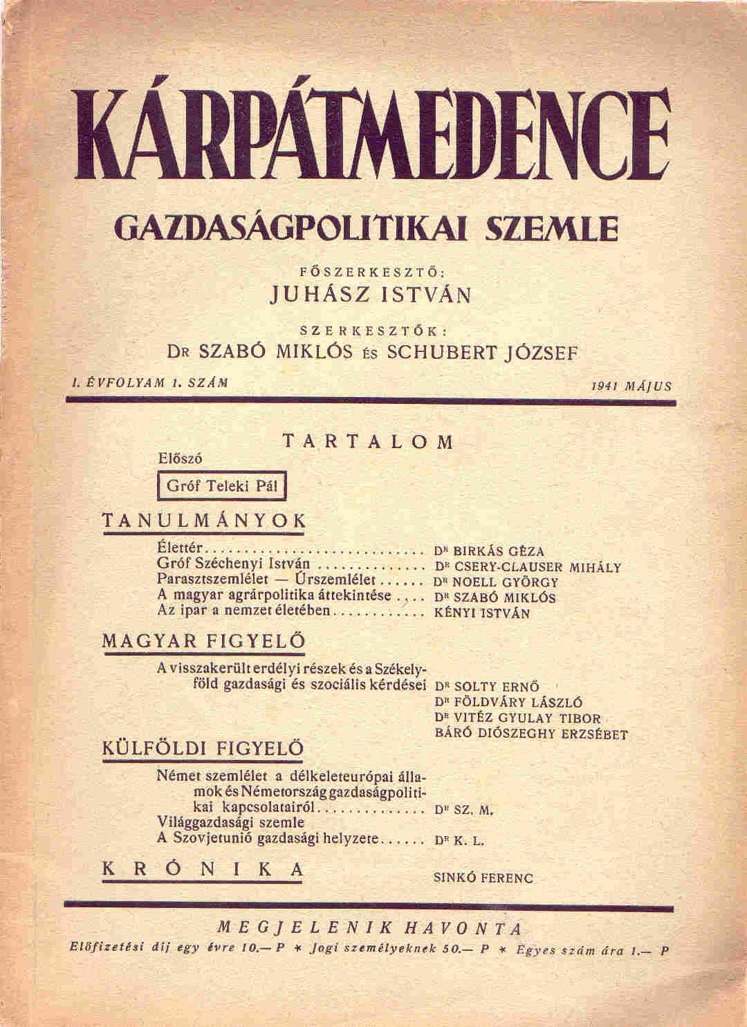 Kárpátmedence - Gazdaságpolitikai szemle. 1. évf. 1941/ 8.sz