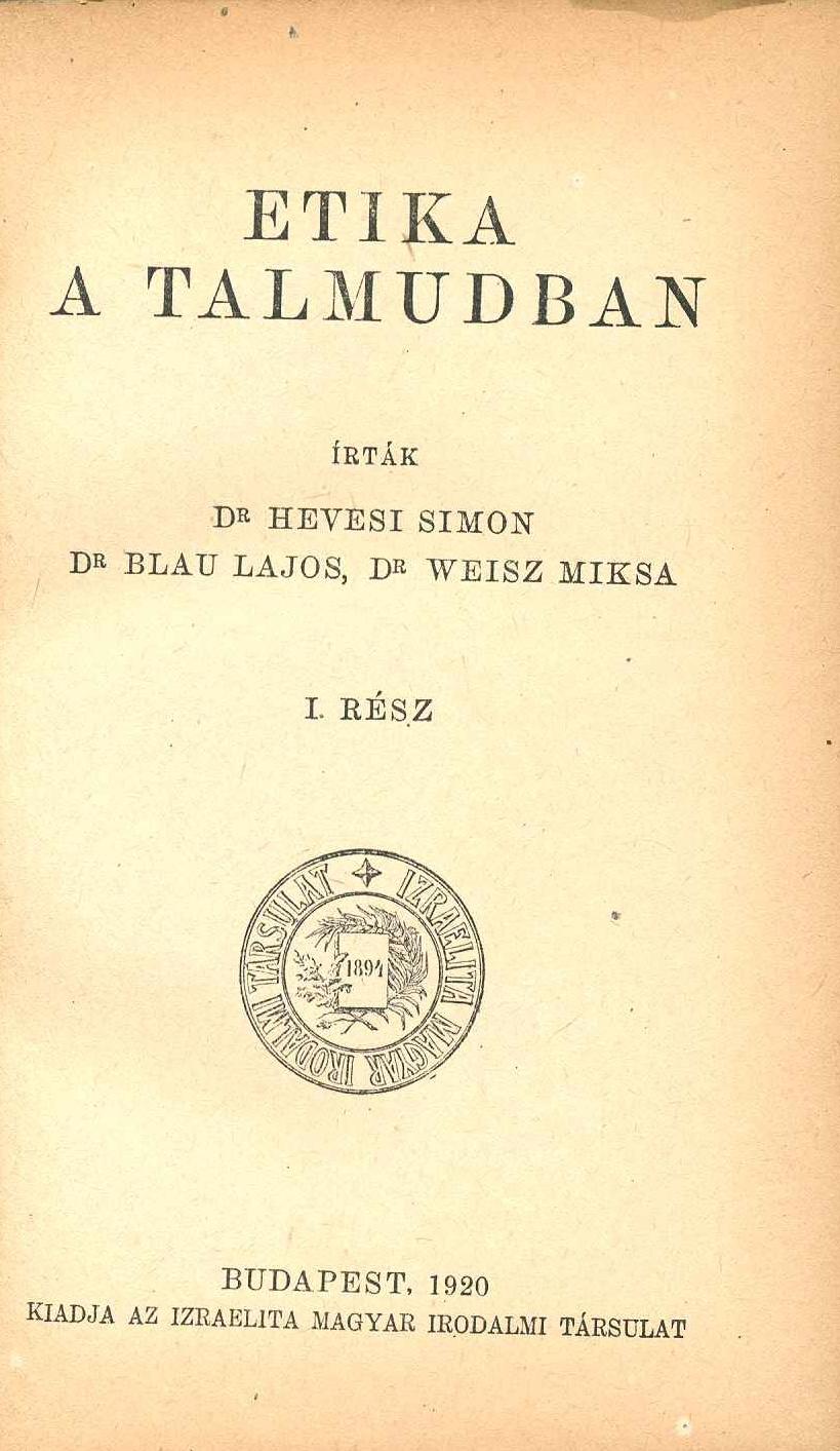 Etika a Talmudban I.rész. (1-2 rész)