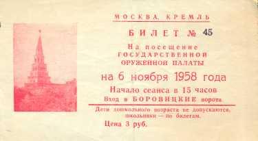 aprónyomtatvány: Moszkva, Kreml belépőjegy 1958 nov. 6.